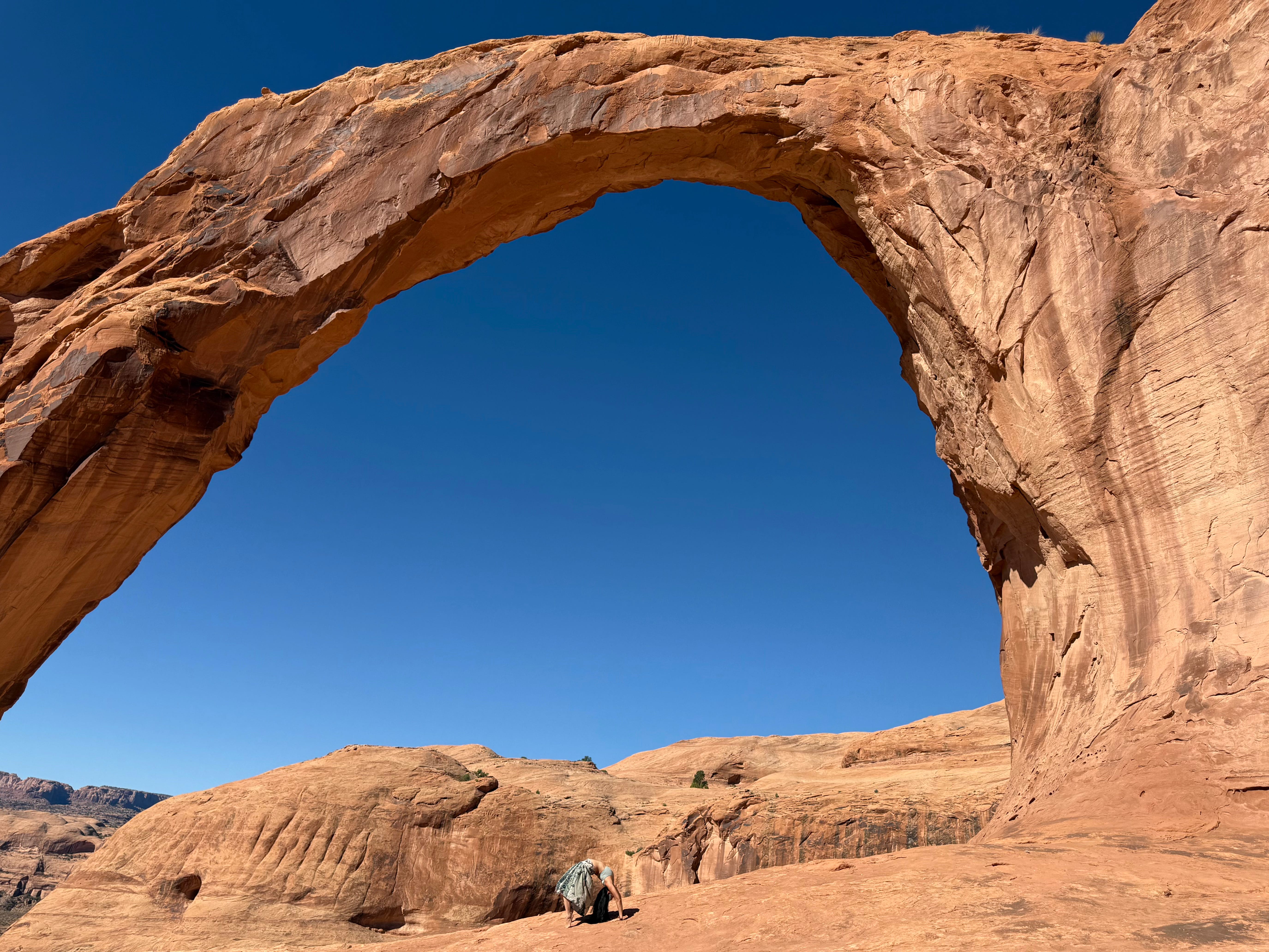 Yesterday, I visited one of my favorite spots in the country: The Corona Arch in Moab, Utah. Above is a picture of me doing a yoga wheel backbend to mirror this incredible sandstone arch.