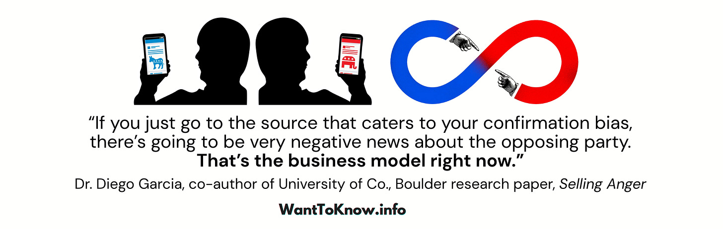 A growing body of research is making it clear: our media systems are structurally designed to amplify outrage and division. Former Facebook data scientist Frances Haugen testified at a Senate hearing that the company's algorithm rewarded angry and polarizing content, even pressuring political parties to post more of it or risk losing visibility, constituents, and ultimately their jobs. Leaked internal research revealed that executives chose to look the other way because it was driving higher user activity and therefore more advertising revenue and growth.